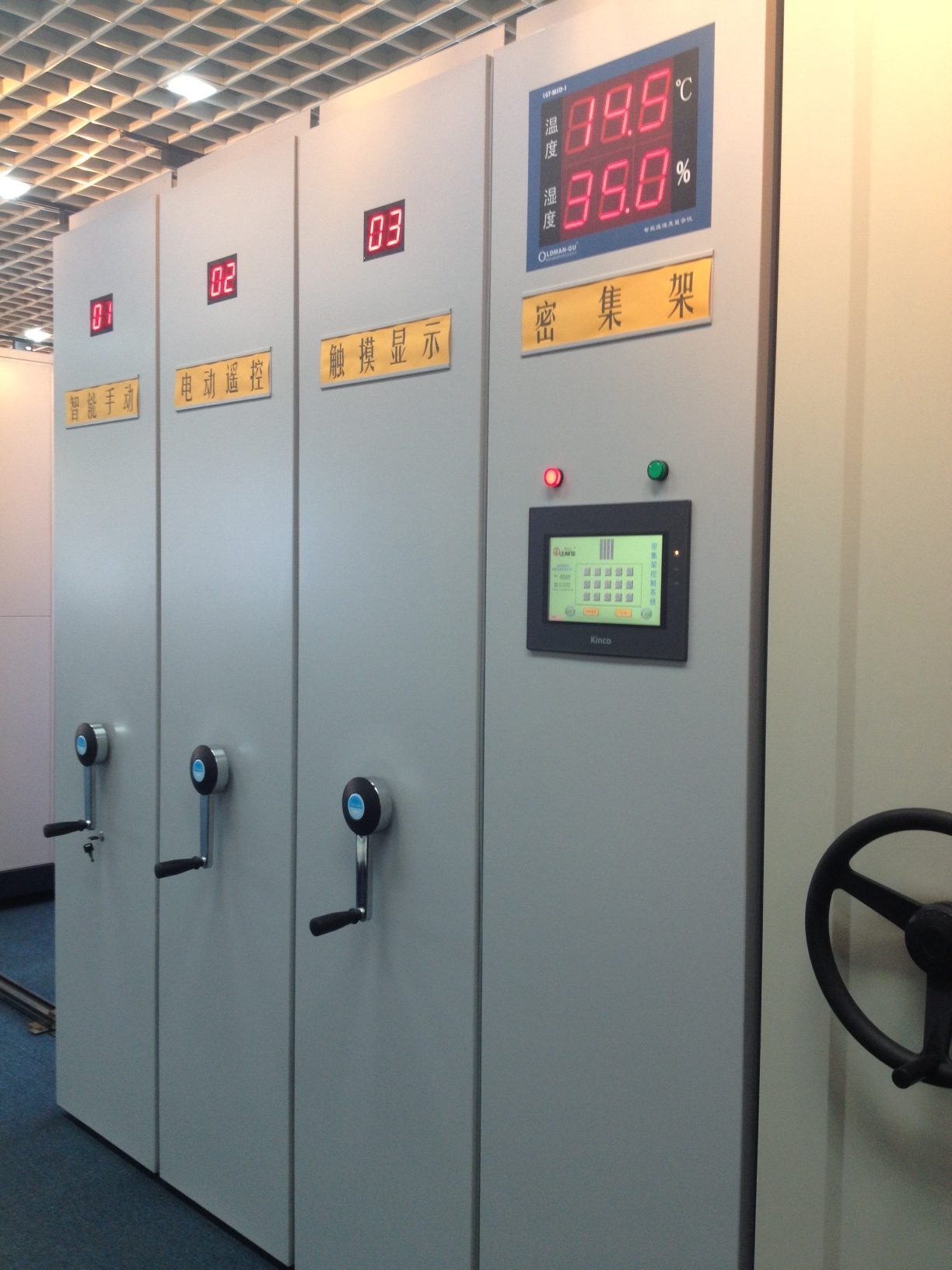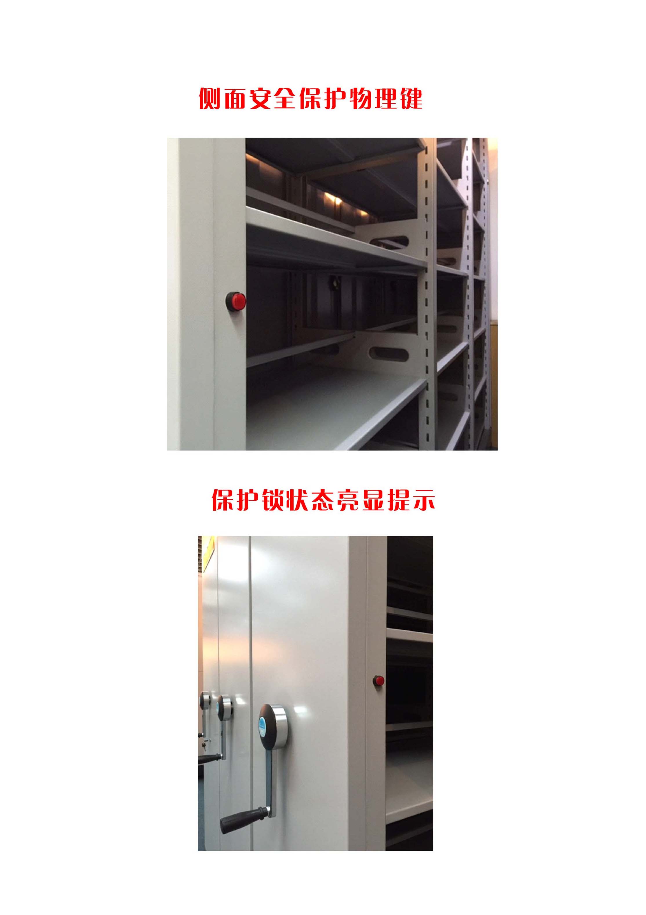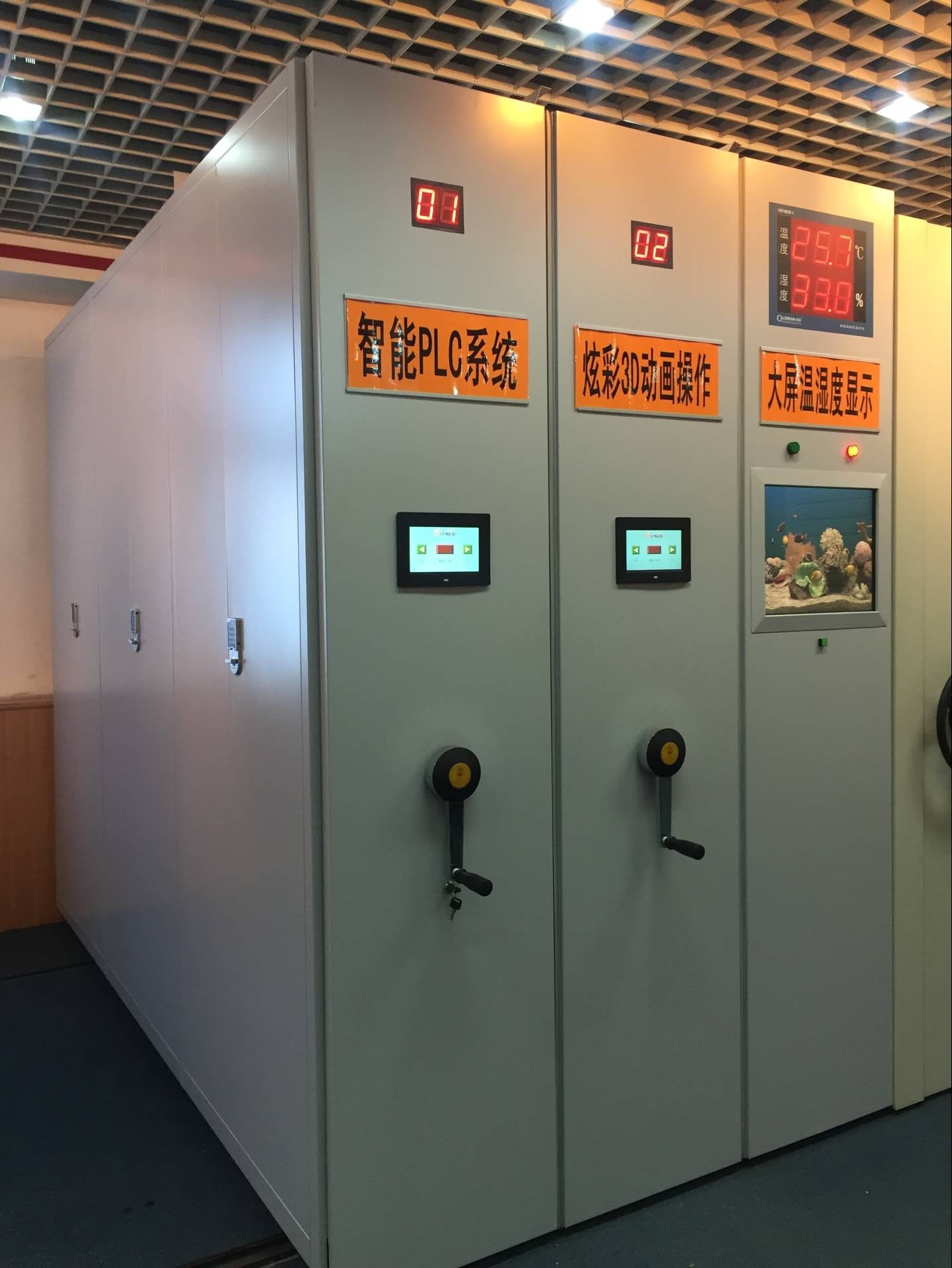 電動功效:手動+電動+遙控器節制+牢固列主控屏10.4寸或19寸炫彩液晶顯現觸摸屏操縱+每組勾當列裝置7寸黑色觸摸屏副屏分鍵盤節制+每列LED數碼列標顯現+牢固列智能溫濕度17寸顯現儀+牢固列Ø22紅/綠燈寧靜掩護狀況唆使燈+每列LED直流24V感到照明燈+每列架體內側裝置物理鍵+軟件設置法式主動封閉通道功效